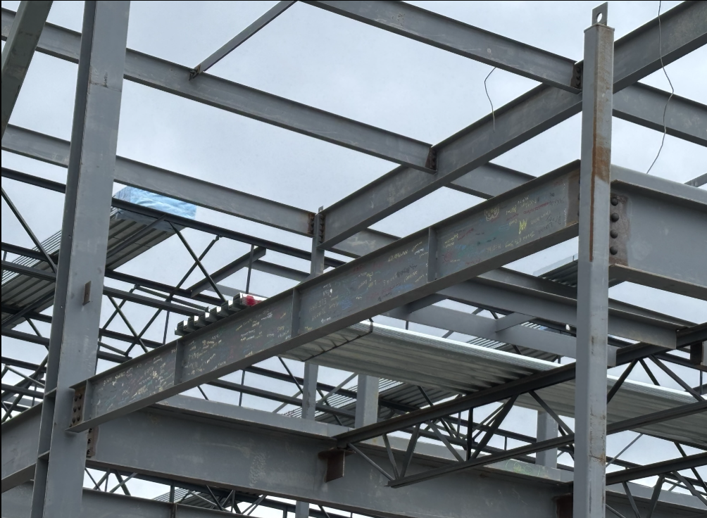 The beam signed by staff and students has been installed in the new building :)