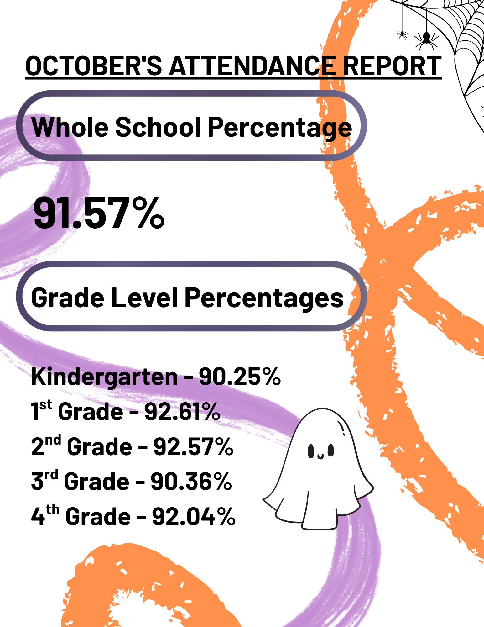 Here is the second attendance report for October. This report looks at attendance by grade-level percentage as well as the overall school percentage to see how well we are doing together as a CHE community.